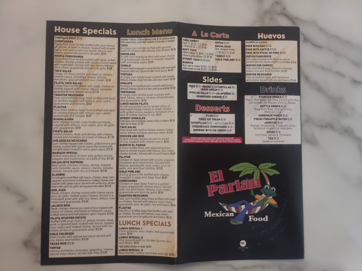 What stands out most is the welcoming atmosphere coupled with the consistently quick, friendly staff who enhance the dining experience. Despite small critiques such as the drink options and parking lot condition, the food quality and portion size offer impressive value. Whether you’re seeking a satisfying night out or a taste of genuine Mexican fare, El Parian’s menu delivers hearty, well-executed dishes made with care and pride.
